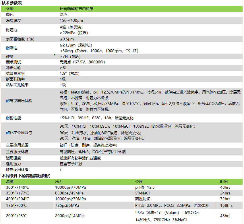 TC2000P是一种高性能的粉末内涂层,主要用于含H2S、CO2的高温、高压天然气钻井环境。