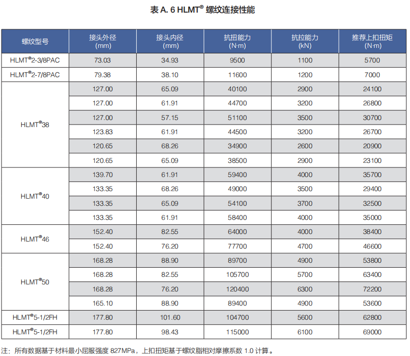 (b)HLMT® 系列包括 HLMT®2-3/8PAC、HLMT®2-7/8PAC、HLMT®38、HLMT®40、HLMT®46、HLMT®50、和 HLMT®5-1/2FH 等规格。